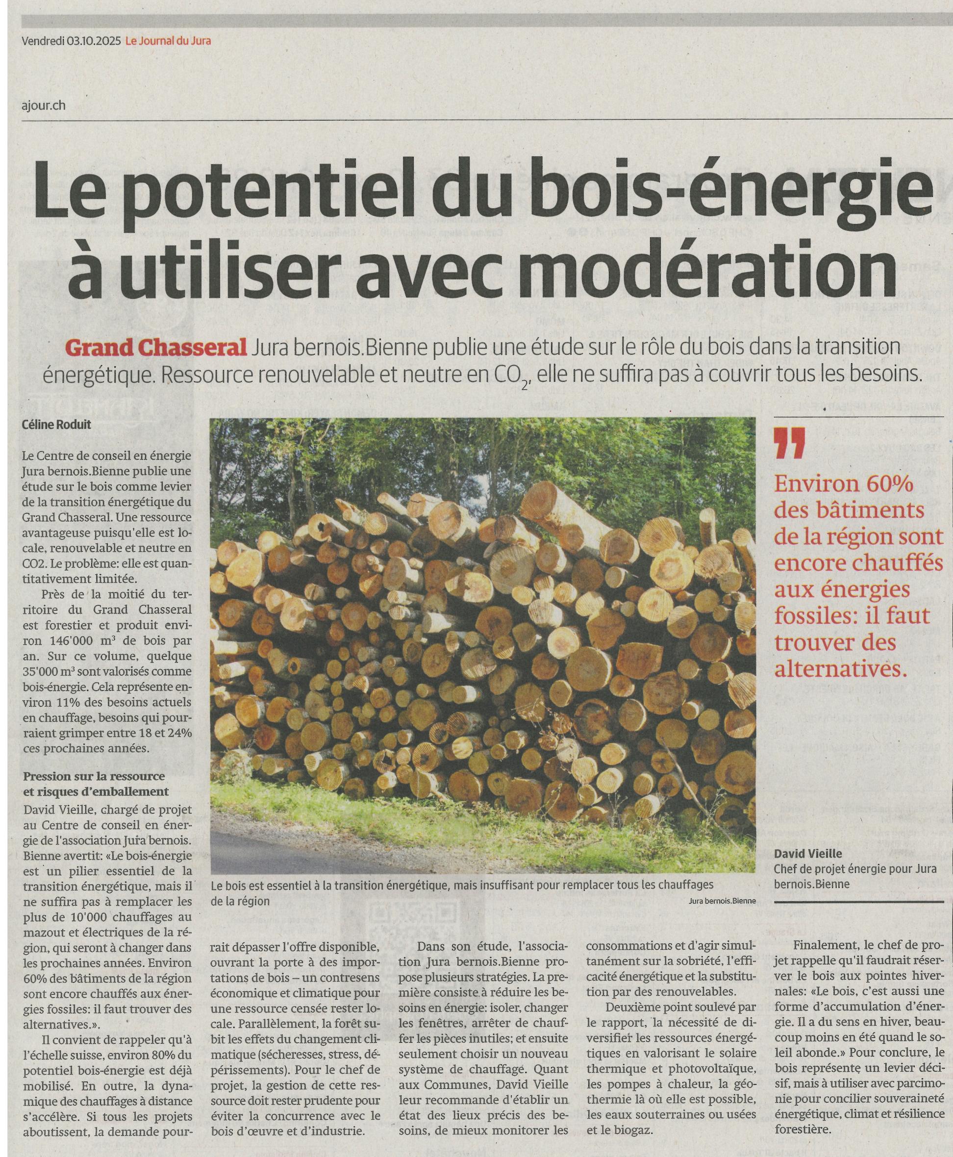 Revue de presse: articles du Journal du Jura et du Quotidien Jurassien, interview au 12h15 de RJB le 02.10.2025.
